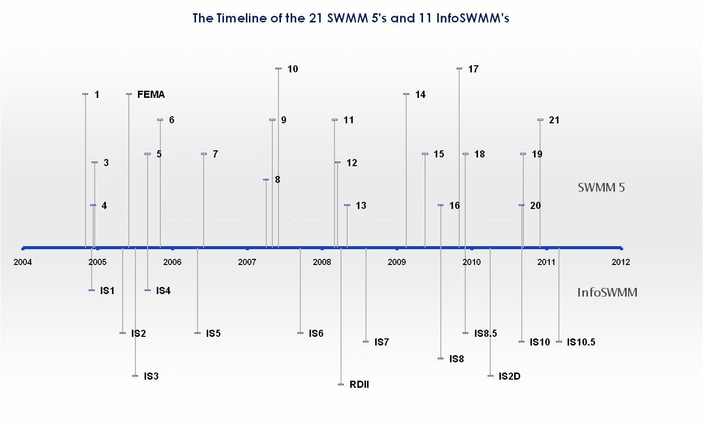 SWMM 5 and InfoSWMM TimeLines Note: SWMM 5 and InfoSWMM Time Lines Figure 1. SWMM 5 and InfoSWMM TimeLines