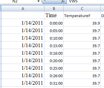 The data imported from the csv file to Excel and after the text to columns tool is used looks like this in Excel. The data is now ready to be imported into SWMM 5 as is by copying and pasting from Excel to a SWMM 5 time series file. You need to perform the following steps: